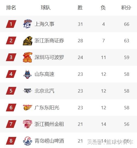 附:CBA积分榜最新排名