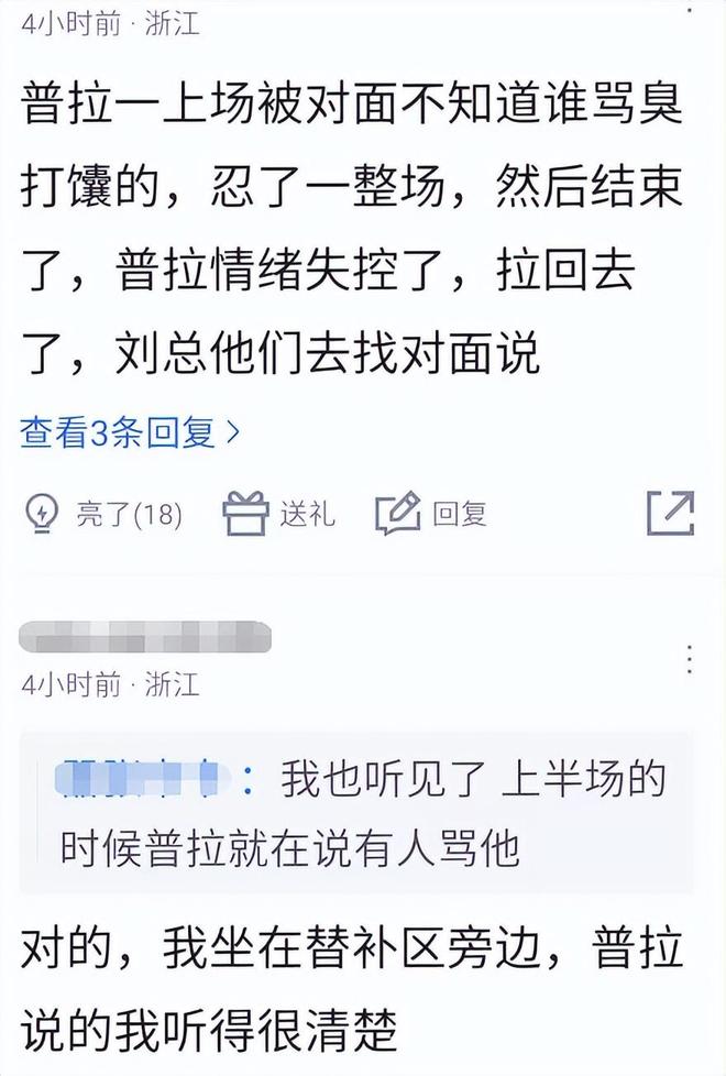 先来看看现场球迷的说法,有目睹了事情起因的浙江球迷在赛后表示,鲁吐布拉之所以如此暴怒,是因为一上场就被对面不知道谁臭骂打馕的,忍了一整场,然后结束才情绪失控。